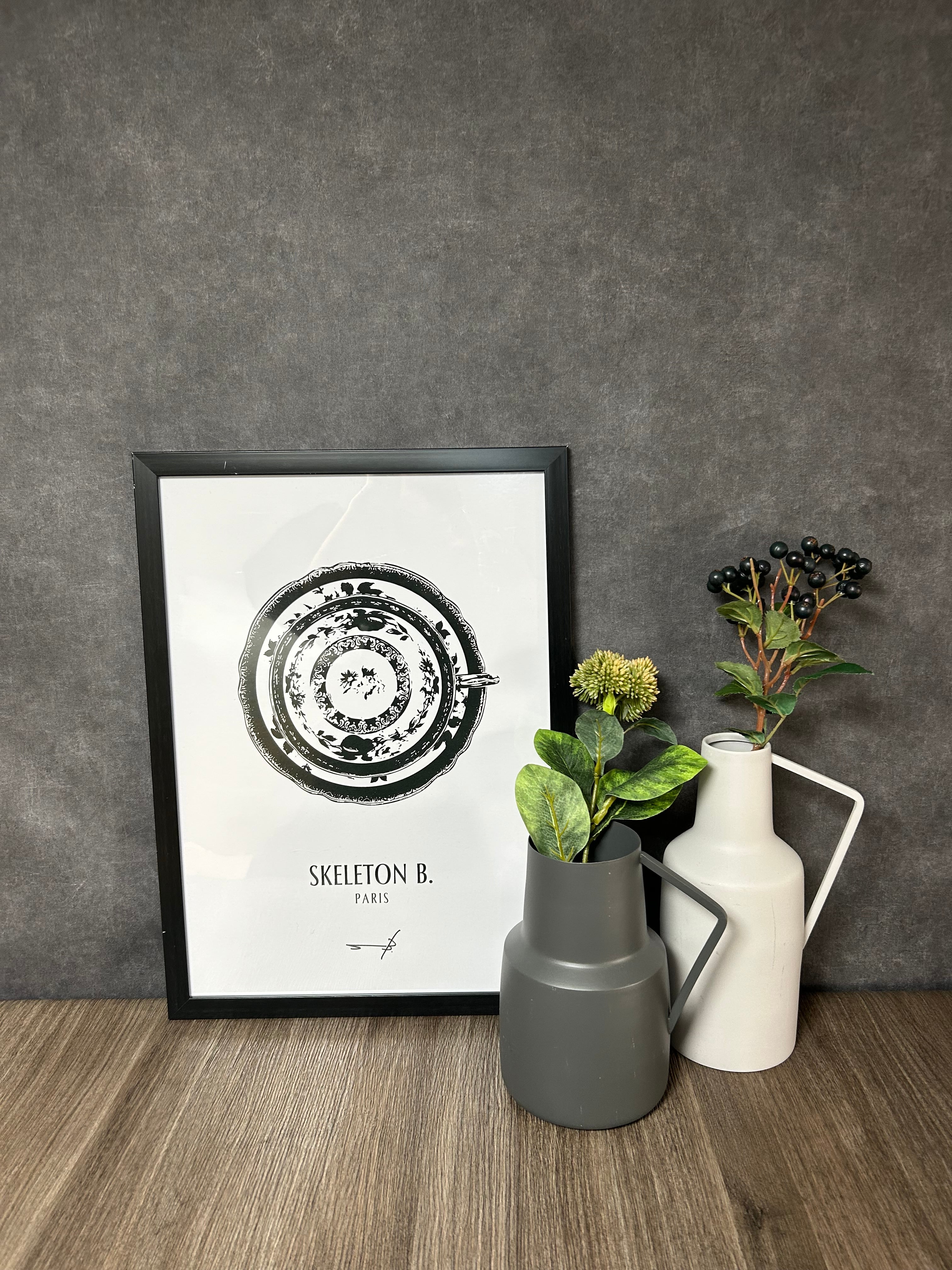 ブラックとグレーのフラワーベースにモノトーンカラーのアートポスターを合わせた、スタイリッシュでシックなディスプレイセットです。