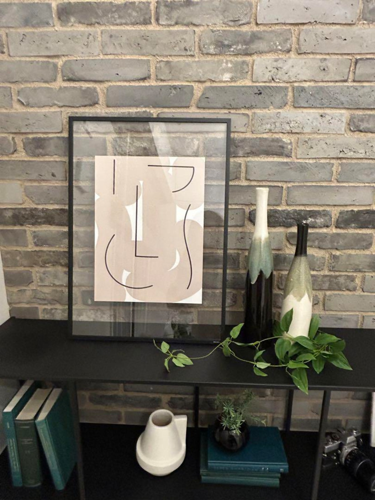 フレームそのものがインテリアとしても絵になるプロダクトでありながら、写真や絵、ポストカード、テキスタイルなどを額に収めると主役を引きたててくれます。