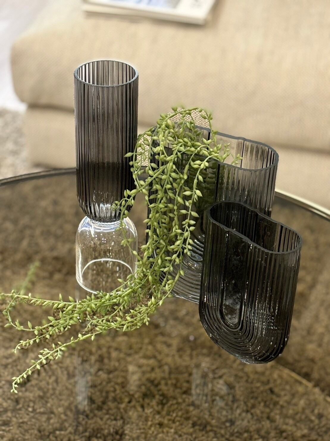 オブジェ・フラワーベース×2・アーティフィシャルグリーンの4点セット。